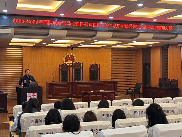公开课上,唐志文回溯了中国共产党对中华优秀传统文化的认知与继承、创新与发展,强调了马克思主义进入中国以后一直与中国实际紧密结合、与中华优秀传统文化同向同行,着重分析了中华优秀传统文化与社会主义核心价值观之间的联系。他引导同学们更加系统地认识“两个结合”的深刻意义,鼓励同学们要把中华优秀传统文化的继承发展与社会主义核心价值观的践行有机结合,在文化传承与实践中实现人生价值。