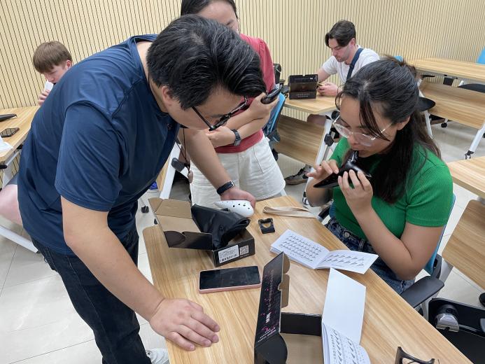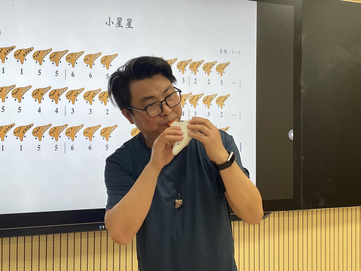 陶笛课充满了欢快的氛围,老师先介绍陶笛的构造和发音原理,留学生们用手中的陶笛吹奏出动人的旋律,让欢快的音符在空气中跳跃,感受这一乐器的独特魅力。