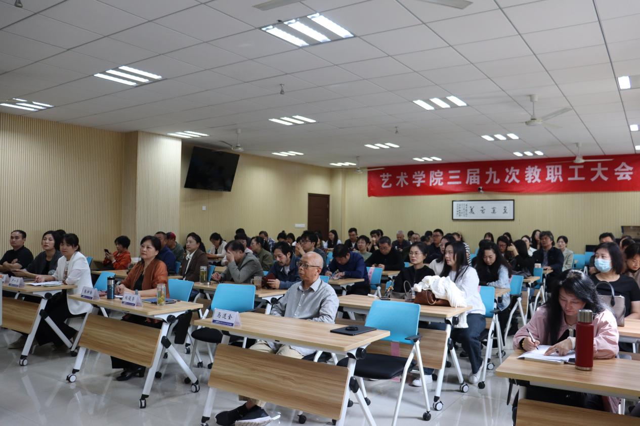10月12日,艺术德州扑克游戏 召开了三届九次教职工大会,传达德州扑克游戏 干部教师大会以及德州扑克游戏 警示教育大会等会议精神,全面总结德州扑克游戏 上半年工作成果,深刻研判德州扑克游戏 发展面临的形势与任务,系统部署德州扑克游戏 下半年重点工作。会议由德州扑克游戏 党委书记张钟勤主持,全体院领导班子成员、教职工参加会议。