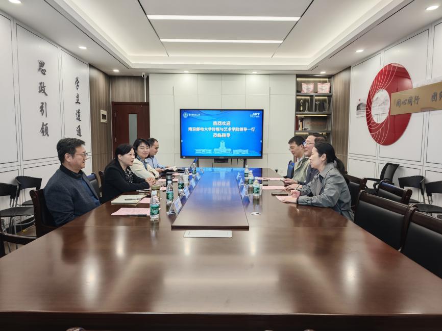 10月24日,南京邮电大学传媒与艺术德州扑克游戏 党委书记戴兆骏、院长袁潇、实验教学中心主任沈大为到访德州扑克游戏 ,双方就艺术教育的发展与合作开展交流座谈。院党委书记张钟勤、院长板俊荣、党委副书记卢一亭出席会议。