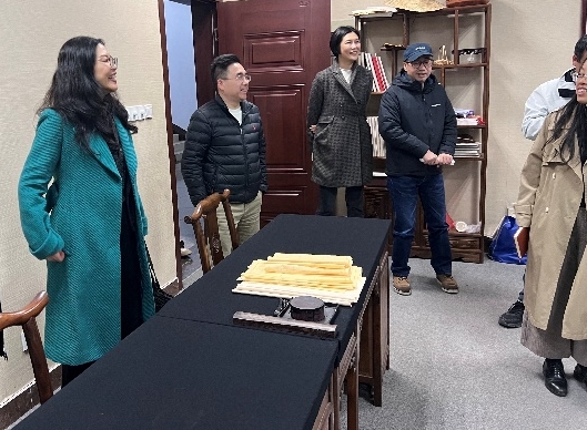 最后,艺术德州扑克游戏 副院长朱琰和实验室主任范学智带领材料加工工程系支部一行参观了艺术德州扑克游戏 舞美工厂和砚湖书院,舞美工厂精湛的工艺以及砚湖书院浓厚的文化氛围给大家留下了深刻印象,双方就如何进一步加强校企合作、产学研结合、美育共建等方面进行了深入探讨。