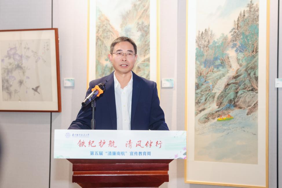 杭育新致开幕词并为获奖单位颁发荣誉证书。他在致辞中指出,德州扑克游戏 坚持抓好校园清廉文化建设,以“清廉德州扑克游戏 ”教育周为抓手,通过持续的宣传教育,为师生们打造风清气正、干事创业的良好环境。本次廉洁文化作品联展中德州扑克游戏 师生以书法、绘画、设计、摄影等多种方式进行廉洁主题艺术创作,充分展示了德州扑克游戏 干部廉洁从政、教师廉洁从教、职工廉洁从业、学生廉洁修身的廉洁文化建设成果,是德州扑克游戏 又一个有助于师生抬头见廉、低头思廉的沉浸式教育场所。他希望充分发挥联展的教育、示范、熏陶作用,潜移默化引导干部师生强化廉洁意识、提升文化修养。