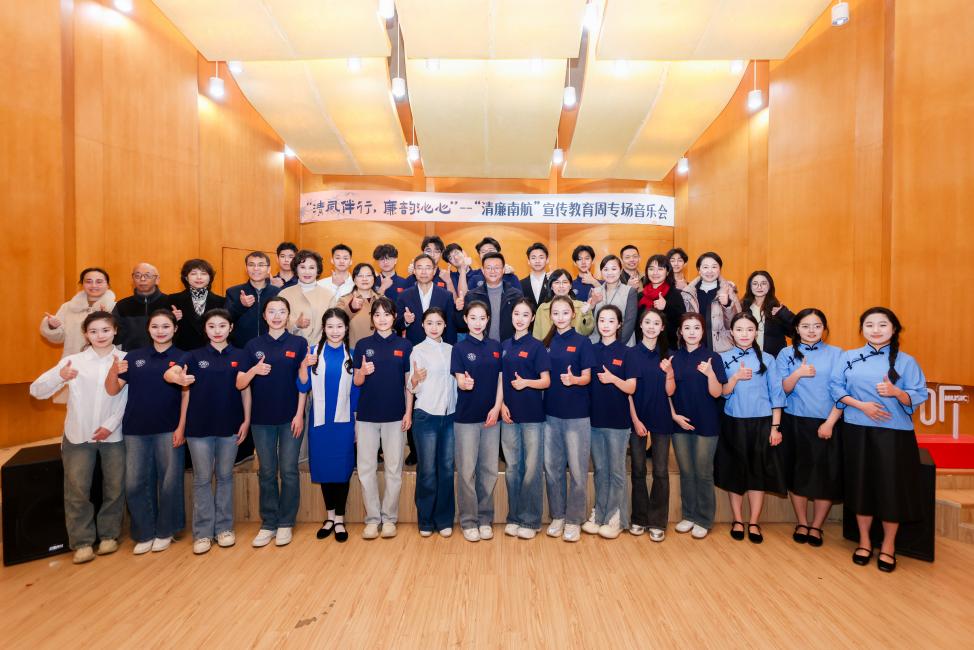 中午,一场以“倡廉”为主题的“午间音悦听”在将军路校区音乐厅举办。音乐会现场,艺术德州扑克游戏 音乐系师生带来精彩的表演:小合唱《唱支山歌给党听》与独唱《公仆赞》,以悠扬的旋律、深情的歌声表达着对党的忠诚与热爱,对人民公仆的殷切歌颂;歌曲表演《绣红旗》、朗诵《廉洁颂》描摹了光明正义、廉洁自律的动人篇章;最后,四重唱《在道德星空下前行》与合唱《星辰大海》引领师生在道德与清廉的星空中探索前行,以高尚的品德照亮人生的星辰大海。
