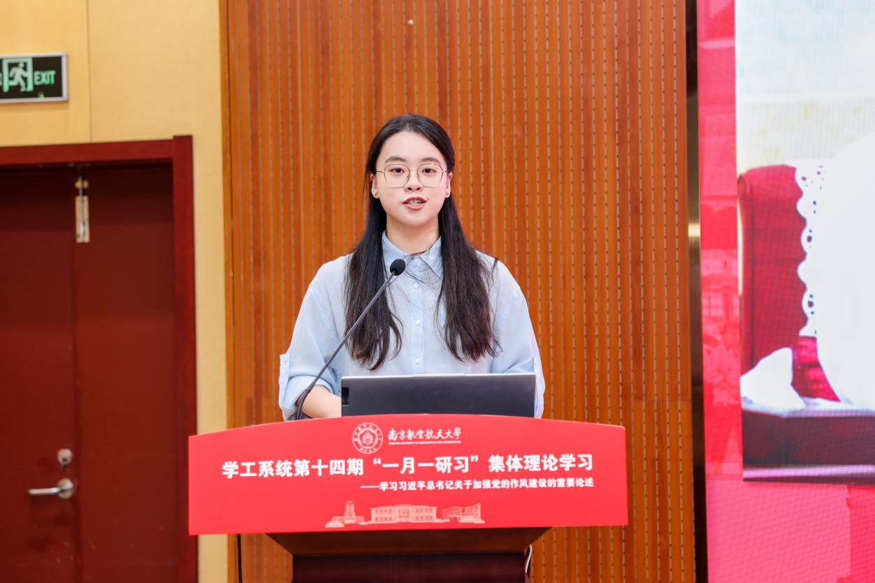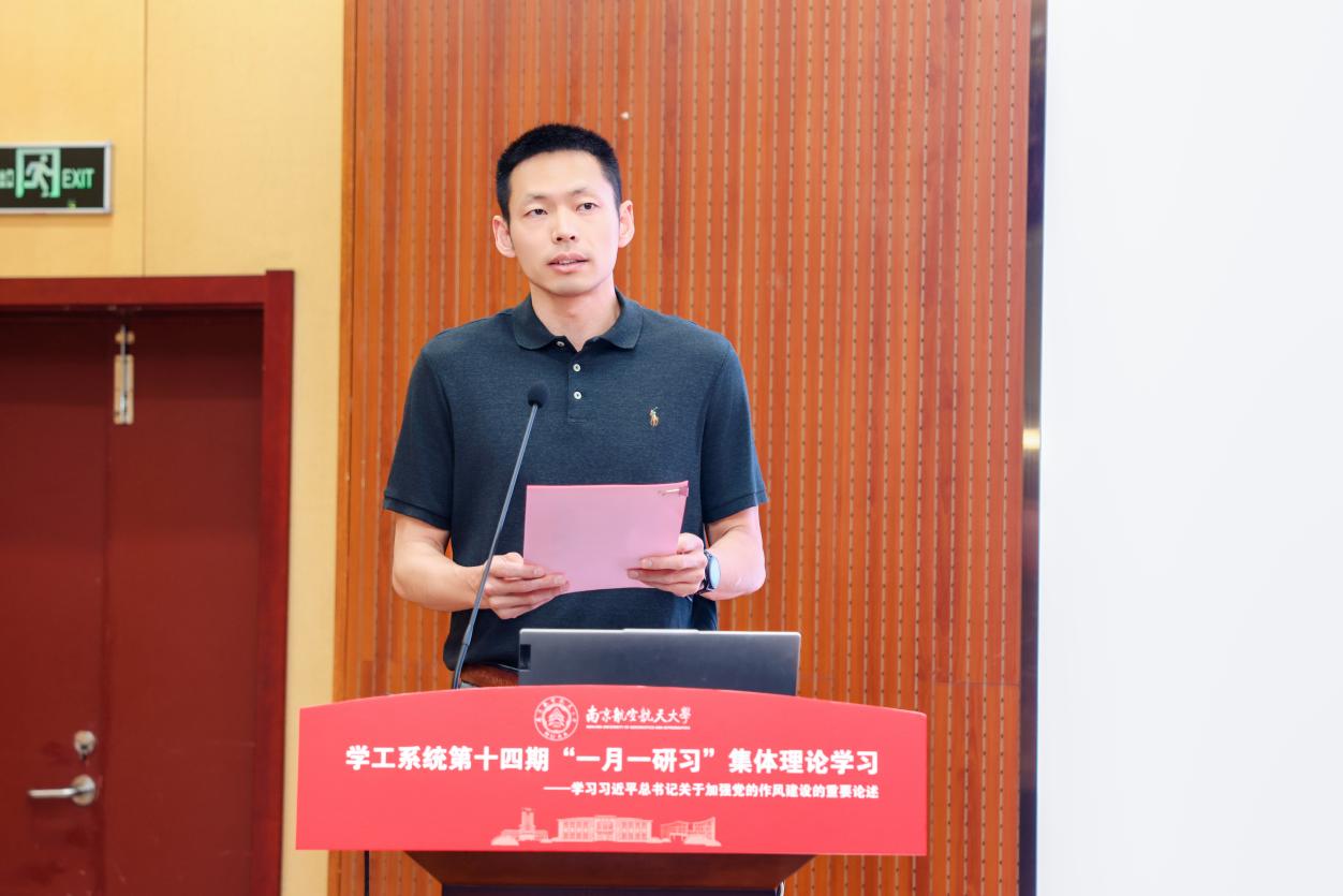 会议最后,刘宇雷分享了学习习近平总书记关于加强党的作风建设的重要论述的思考和体会。他指出,作为德州扑克游戏 学生日常思想政治教育和管理工作的组织者、实施者、指导者,学生工作人员理应以作风建设新成效推动保持党的先进性和纯洁性,进一步筑牢守好思想政治阵地和意识形态阵地,营造风清气正、向善向上的育人生态,努力实现培根铸魂育新人的工作目标。他从三个方面提出具体要求:一是提高政治站位,深化思想认识,切实增强开展学习教育的政治自觉;二是对标目标要求,把握工作安排,高质量落实学查改各项重点任务;三是坚持问题导向,把握方法规律,深化作风建设务求工作取得实效。他强调,加强党性修养要一以贯之,不断在自我修炼、自我约束、自我改造中检视、砥砺和提高,保持永不变色的党员本色和始终如一的育人初心。