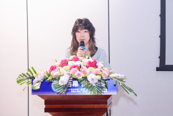 开幕式上,广播电视学专业负责人蔡雁彬副教授为大家具体介绍了专业的实践教学情况,她表示本次展会以“星河为幕”将艺术与科技深度融合,包含“以艺术之名:图文设计中的匠心突围”、“以新闻之名:融合报道的破界实践”、“以影像之名:社会观察的先锋实验”三大板块,涵盖广告创作、深度报道、实验影像及社会实践等多元形态,将德州扑克游戏 近年来在社会竞赛、实践教学中的成果以全新的方式向全校汇报。蔡主任说到:“今天的展会不仅是对过往成果的总结,也是新征程的起点,面向未来,艺术德州扑克游戏 将继续强化创新创业技术产业的生态链,依托大广赛平台,推动广告技术与人工智能,大数据等新技术的融合与发展,通过竞赛与实践引导学生创意创新的开拓与优化。”
