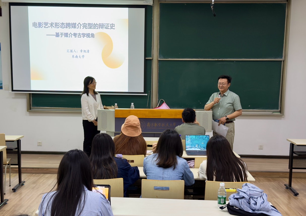 五月的江宁阳光明媚,微风和煦。29日下午,东南大学艺术德州扑克游戏 博士生导师章旭清教授应德州扑克游戏艺术德州扑克游戏 邀请,为师生带来一场“电影艺术形态跨媒介完型的辩证史——基于媒介考古学视角”的专题讲座。板俊荣教授主持了本次讲座,广播电视艺术学学科负责人罗良清教授担任对话专家,现场学术氛围浓厚,新闻传播系讲师马健、高娜及将军路校区四十余位同学共同出席本次活动。