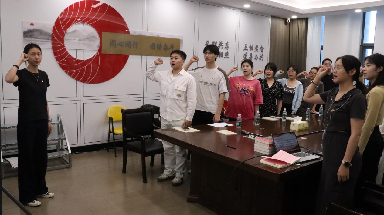 本科生党员顾雨桦同志领誓,全体毕业生党员面向党旗,目光灼灼如炬,庄严宣誓,重温入党誓词。铿锵有力的誓言,既是对大学阶段党员身份的深刻总结,更是对未来人生征程的坚定承诺,让每一位党员在即将告别校园之际,重忆初心、笃定使命。
