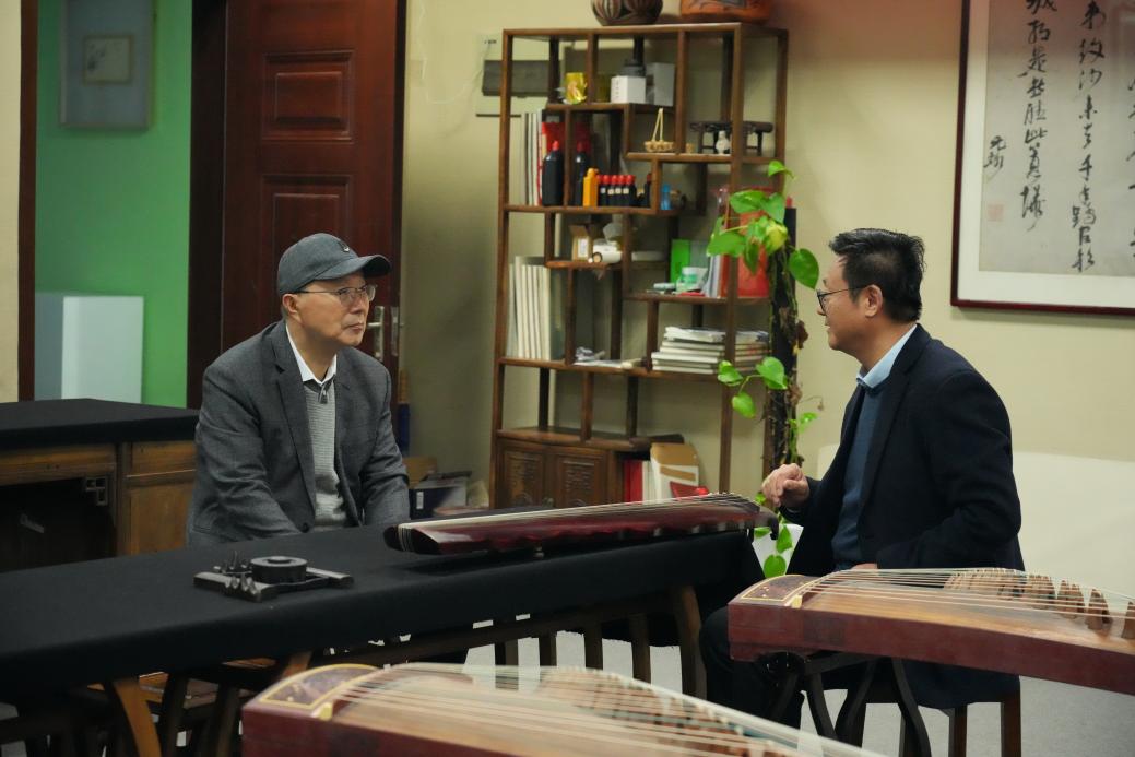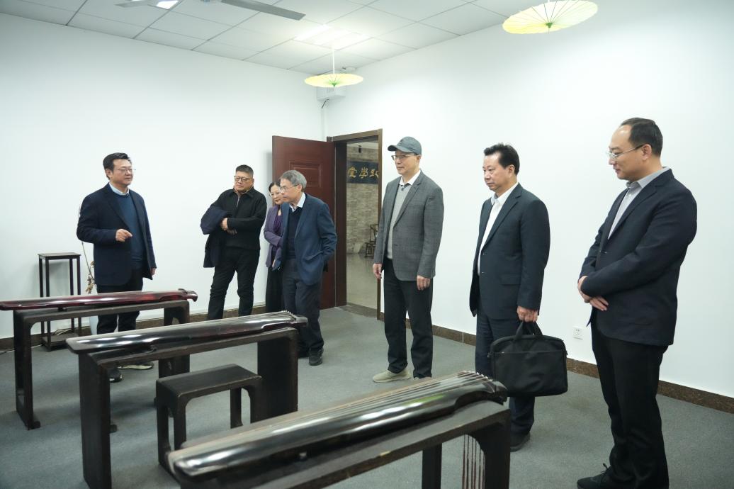 在舞美工场实验室,谭振亚书记细致观看了学生的舞台设计作品,并沉浸式体验了虚拟仿真平台带来的震撼舞台效果。随后走进砚湖书院,谭书记在一幅幅师生书画作品前驻足欣赏,认真聆听了书院的发展历程与当前开设的多门特色课程。其间,板俊荣院长现场即兴演奏古琴,琴韵悠扬,营造出典雅和谐的艺术氛围,大家围绕音乐、书法与艺术创作等话题展开了轻松而深入的交流。
