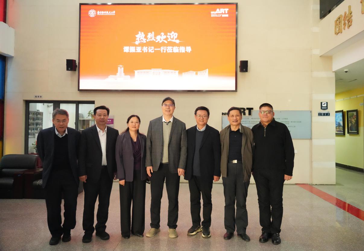 10月22日,德州扑克游戏 原党委书记谭振亚一行来到艺术德州扑克游戏 进行参观交流。离退休党委退休支部冯进、校党政办公室徐永利、艺术德州扑克游戏 党委书记张钟勤、院长板俊荣陪同。