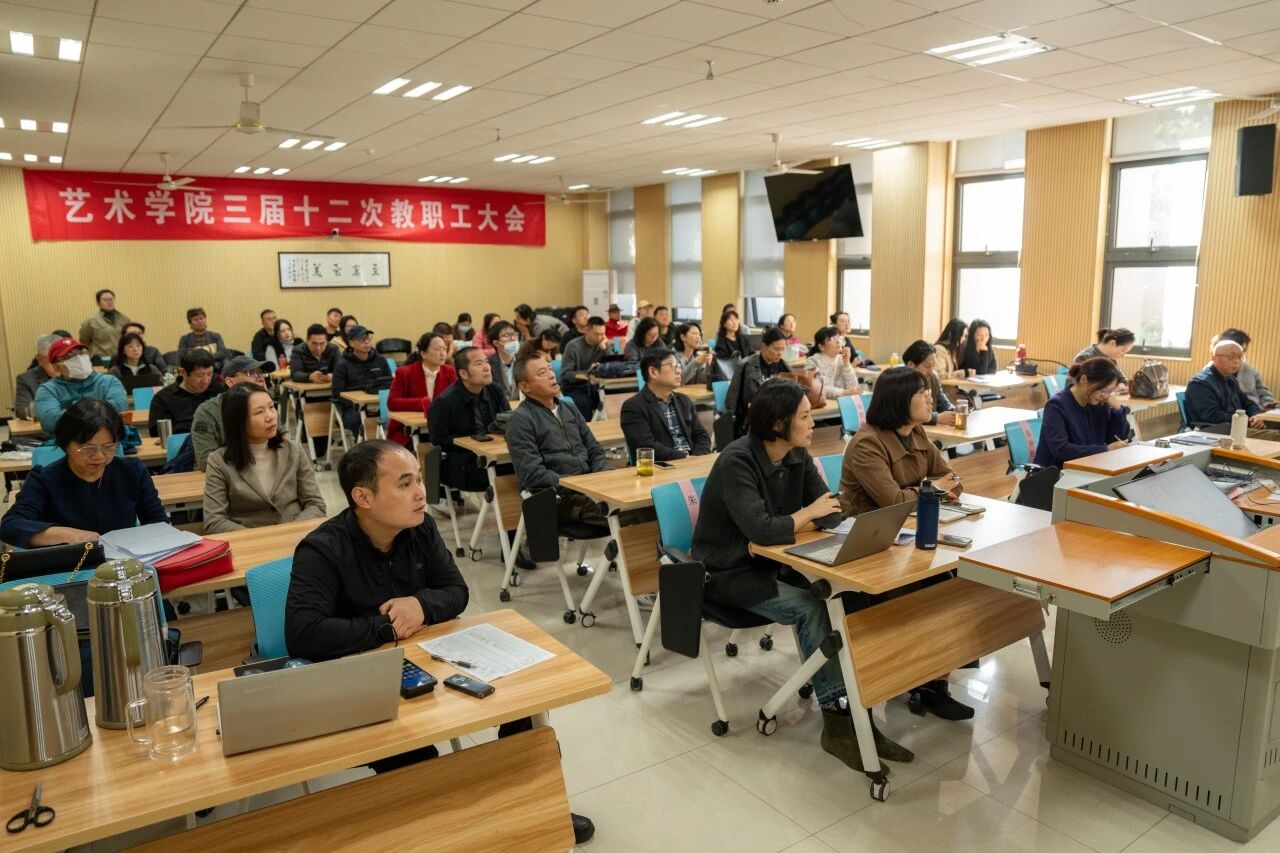 11月11日,艺术德州扑克游戏 召开三届十二次教职工大会,围绕德州扑克游戏 发展规划、教师考核评价、人才培养及师德师风建设等关键议题,开展了深入学习和工作部署。会议由德州扑克游戏 党委书记张钟勤主持,德州扑克游戏 领导班子成员、全体教职工参加会议。
