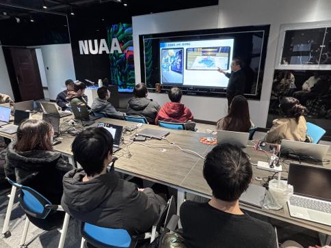21位同学在短短两天内,完成了从创意构思、AI素材生成、三维场景搭建到AR交互设置的全流程创作。每位同学都成功完成了独具特色的个人AR作品,成果展示形式丰富多元,部分作品聚焦于对校园标志性建筑的数字重塑,另一部分则围绕航空航天主题展开创意表达。这些作品充分展现了学生们在艺术想象力与科技应用能力上的有效融合与积极探索。